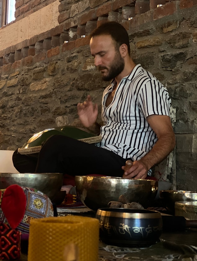 Üniversiteye ilk girdiğim senelerde abimin şirketinde çalışmaya başladım. 2008’den 2015’e kadar çalıştığım bu süre zarfında hayatımla ilgili bir değişiklik yaşamak istedim. Yurtdışına çıkmak ayrıca bir süre için sadece seyahat etmek, yolculuk yapmak niyetindeydim ayrıca dünya turu yapma kararı aldım. 2016 senesinde önce Güney Amerika sonra Afrika ayrıca ardından Asya’ya geçtim. İlk kez ses meditasyonuyla Asya seyahatimde Nepal’de tanıştım. Çok etkilendim ses meditasyonundan. Bu arada handpan enstrümanını ilk kez orada görmüş oldum ama etkilendiğimi hissetmeme rağmen handpan almak gibi bir isteğim yoktu başlarda. Nepal’den Tayland’a geçtiğimde bu sefer daha geniş bir şekilde meditasyonu deneyimleme imkanım oldu. Çünkü artık ne olup olmadığını biliyordum. Arkasından araştırmalar yapmaya başladım. Bana iyi geldiğini anlamaya, üzerinde biraz daha zaman geçirmeye başladım. Hatta şunu belirteyim ben meditasyonla özellikle ses meditasyonuyla ilgilendikçe içimde olup bitenler dışarıya yansımaya başlandı ayrıca bir gün gözyaşı dökmeye başladım bir meditasyonum anımda. Ben de hislerle hareket etmeyi seven bir insanım ayrıca bedenime böyle yansıyınca ayrıca hislerime dokununca aklımın bir köşesinde kaldı. O sıralarda bu eğitimi almak da aklımda olan bir şey değildi. O zamanlar farklı ihtiyaçlarım farklı dertlerim vardı. Sadece geziyordum, aynı zamanda hayayımı idame ettirmek için de çalışıyordum.
