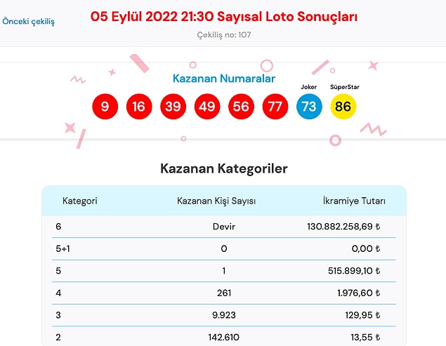 5 Eylül Sayısal Loto Sonuç Ekranı